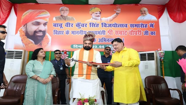 1. CM सम्राट चौधरी अमर स्वतंत्रता सेनानी वीर कुंवर सिंह की जयंती के अवसर पर उनकी प्रतिमा पर माल्यार्पण करते हुए
